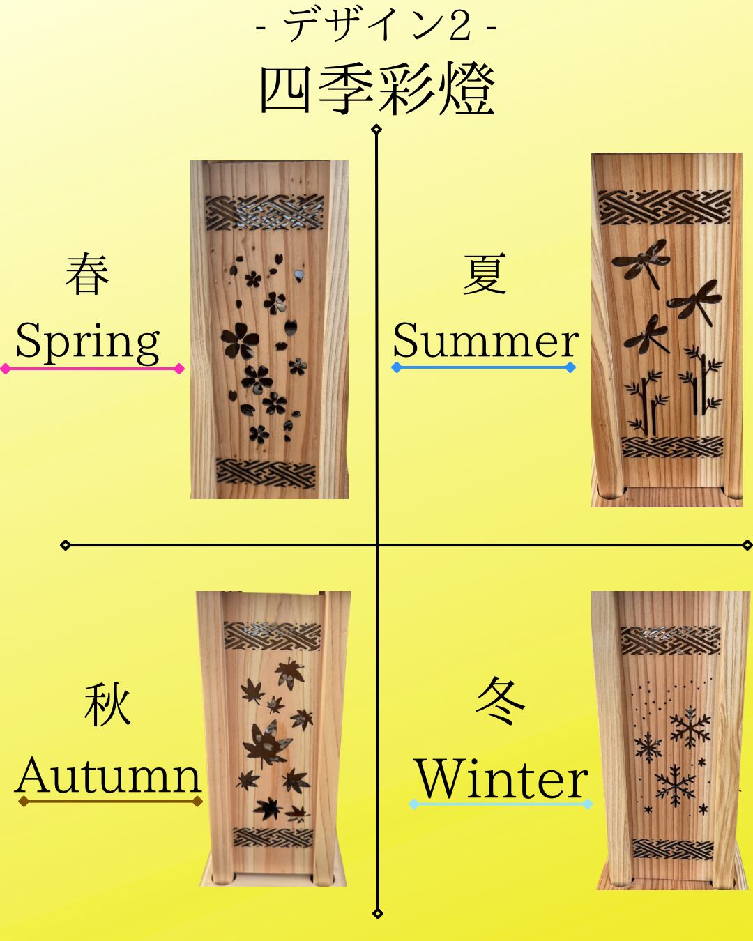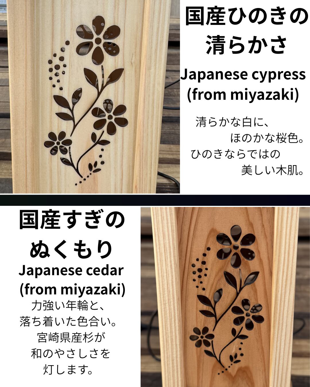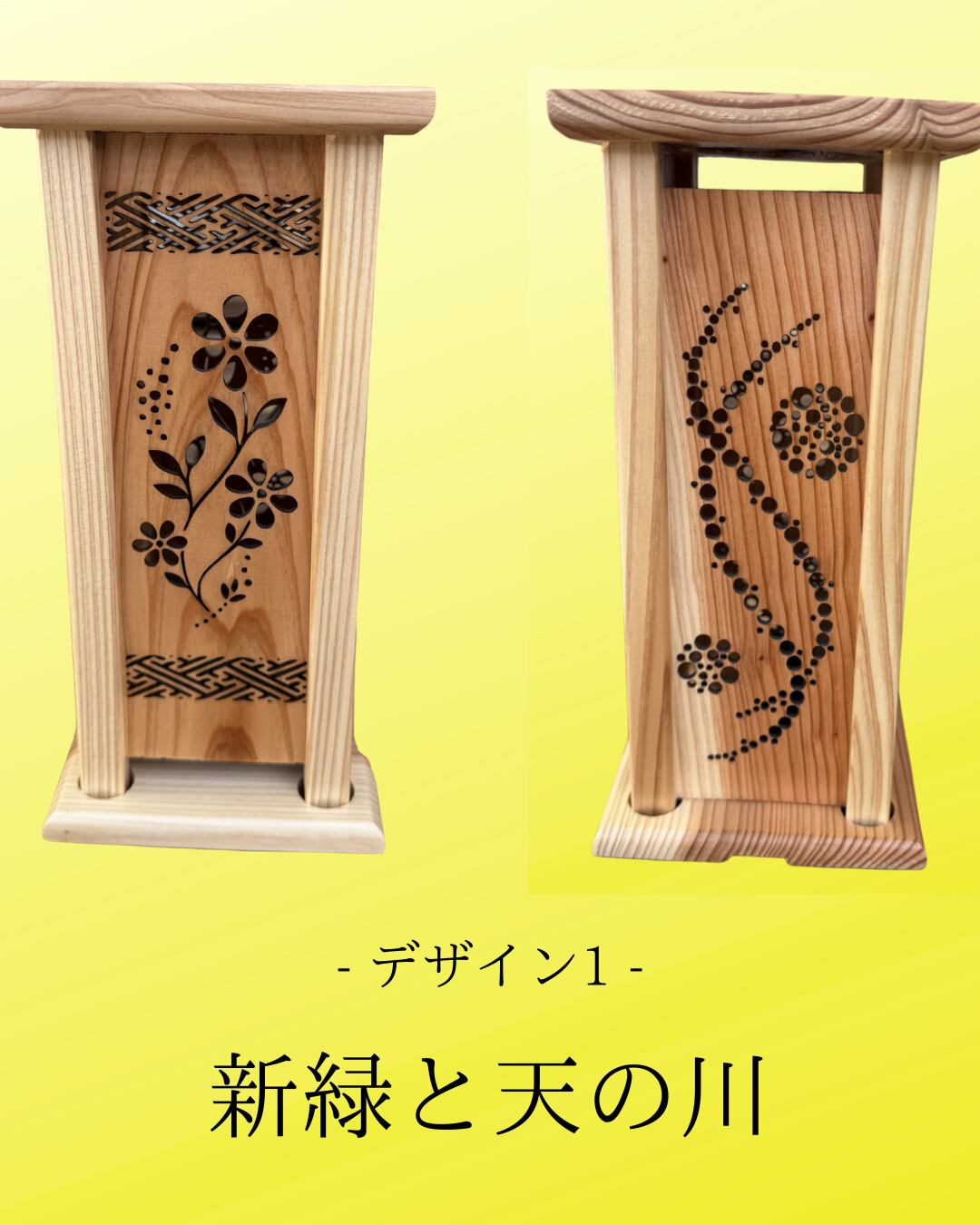 デザイン(2種)と木の種類(杉、ひのき)から選べます。選択欄でお選びください。