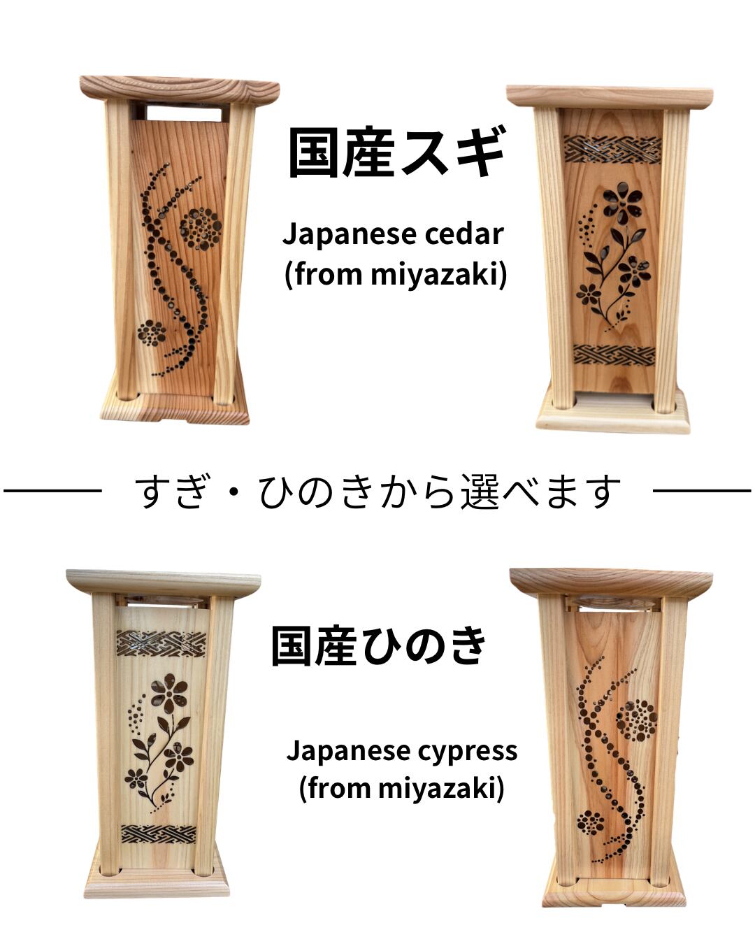 国産ひのき、スギ材を使用した卓上サイズの和灯籠です。